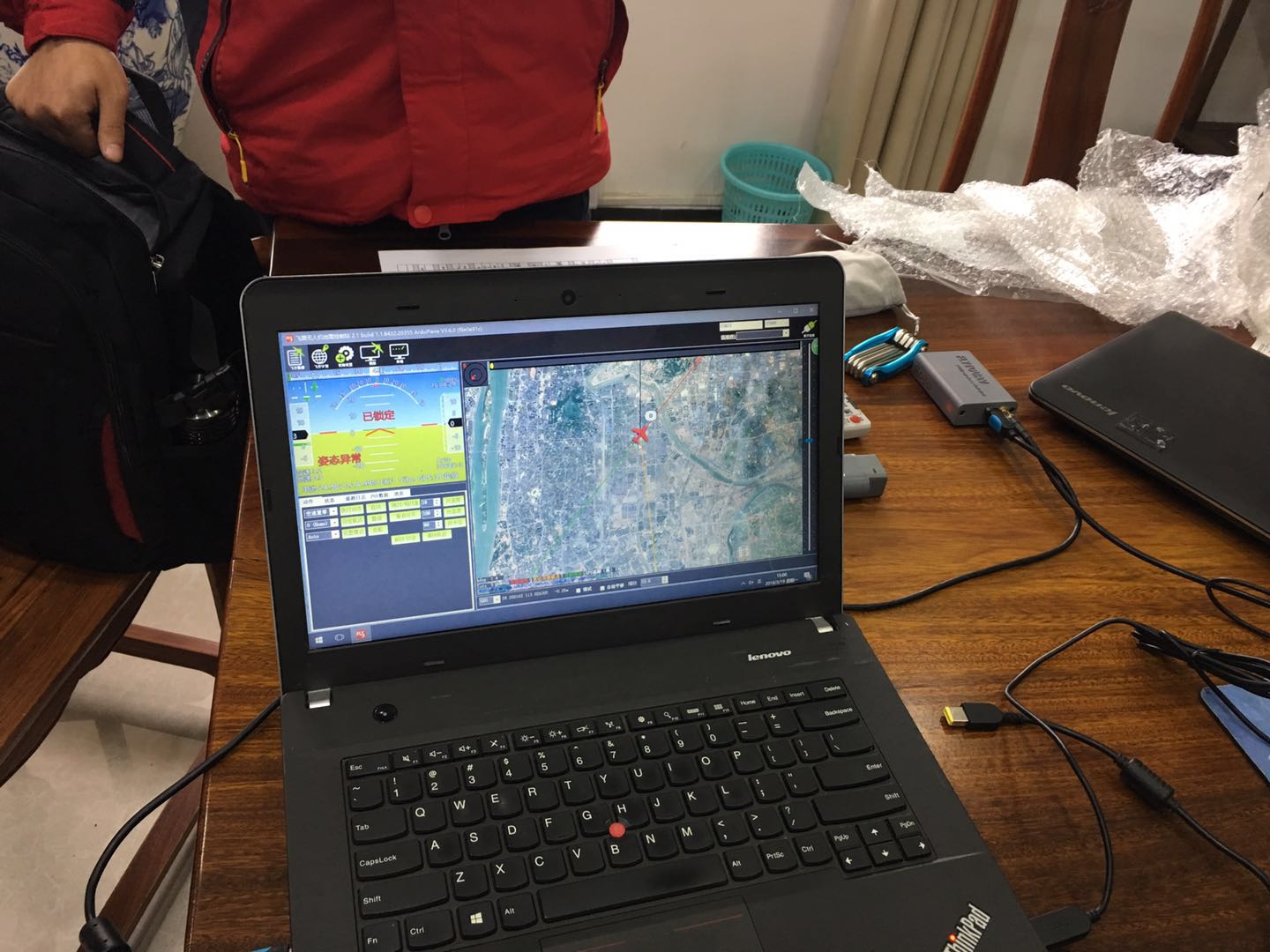 公司技術(shù)人員到達(dá)會議地點后,首先對無人機平臺、地面控制站、差分模塊等設(shè)備進行現(xiàn)場調(diào)試和檢校。