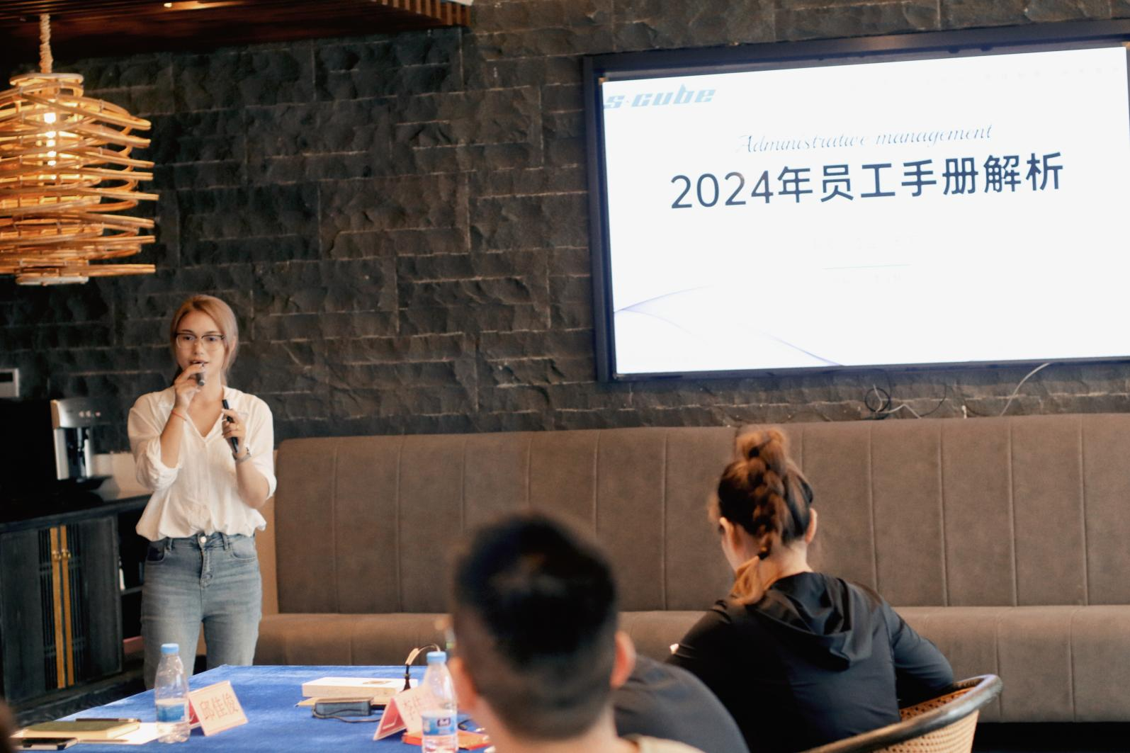各部門負(fù)責(zé)人的工作匯報結(jié)束后,由總經(jīng)理助理--李佳慧對《2024年員工手冊》重要部分進(jìn)行解析宣導(dǎo),大家一致認(rèn)可并啟動實施