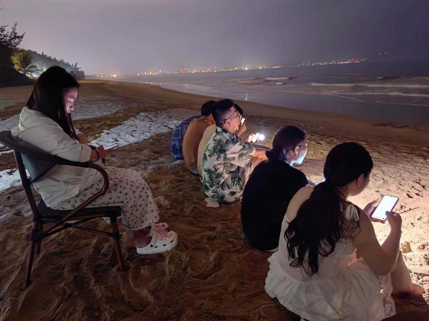 我們將沙灘音樂會地點特地安排在海邊沙灘上,聽著海水潮起潮落,耳邊是海風輕拂的聲音,一群志同道合的伙伴相聚在一起,喝著小酒,唱著歌兒,在這一刻,海邊彌漫著溫情,風都溫柔了些許。