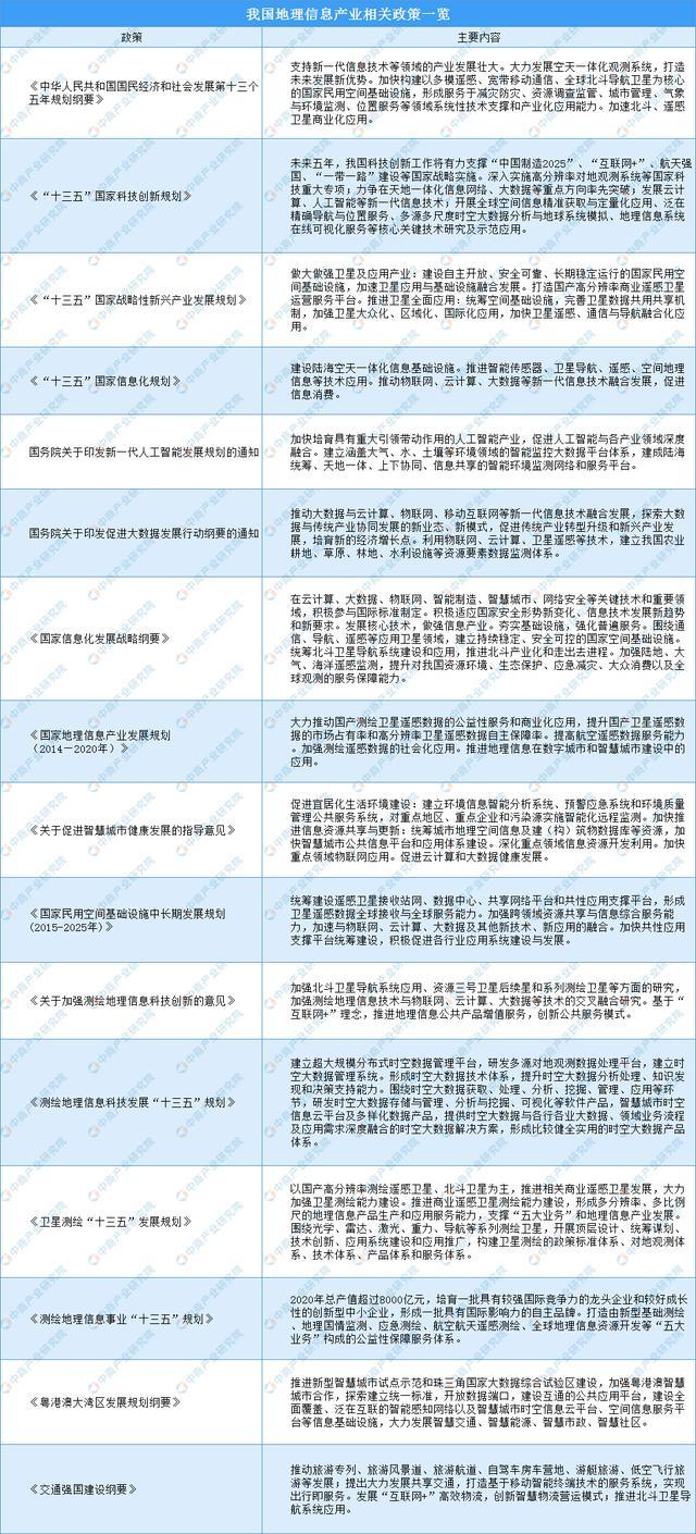 近年來(lái),我國(guó)重視地理信息產(chǎn)業(yè)的發(fā)展,多項(xiàng)政策文件帶來(lái)利好: